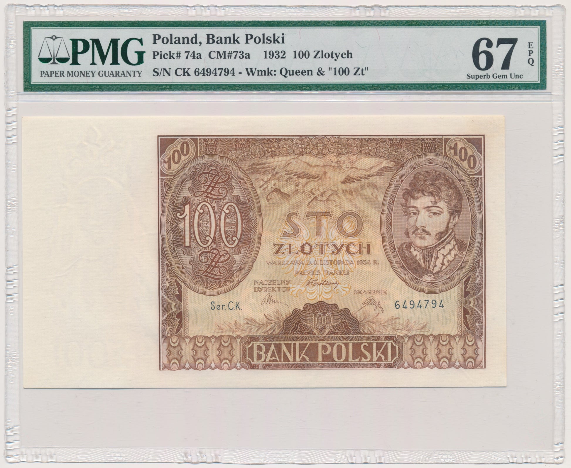 100 złotych 1934 – Ser.C.K. – PMG 67 EPQ
