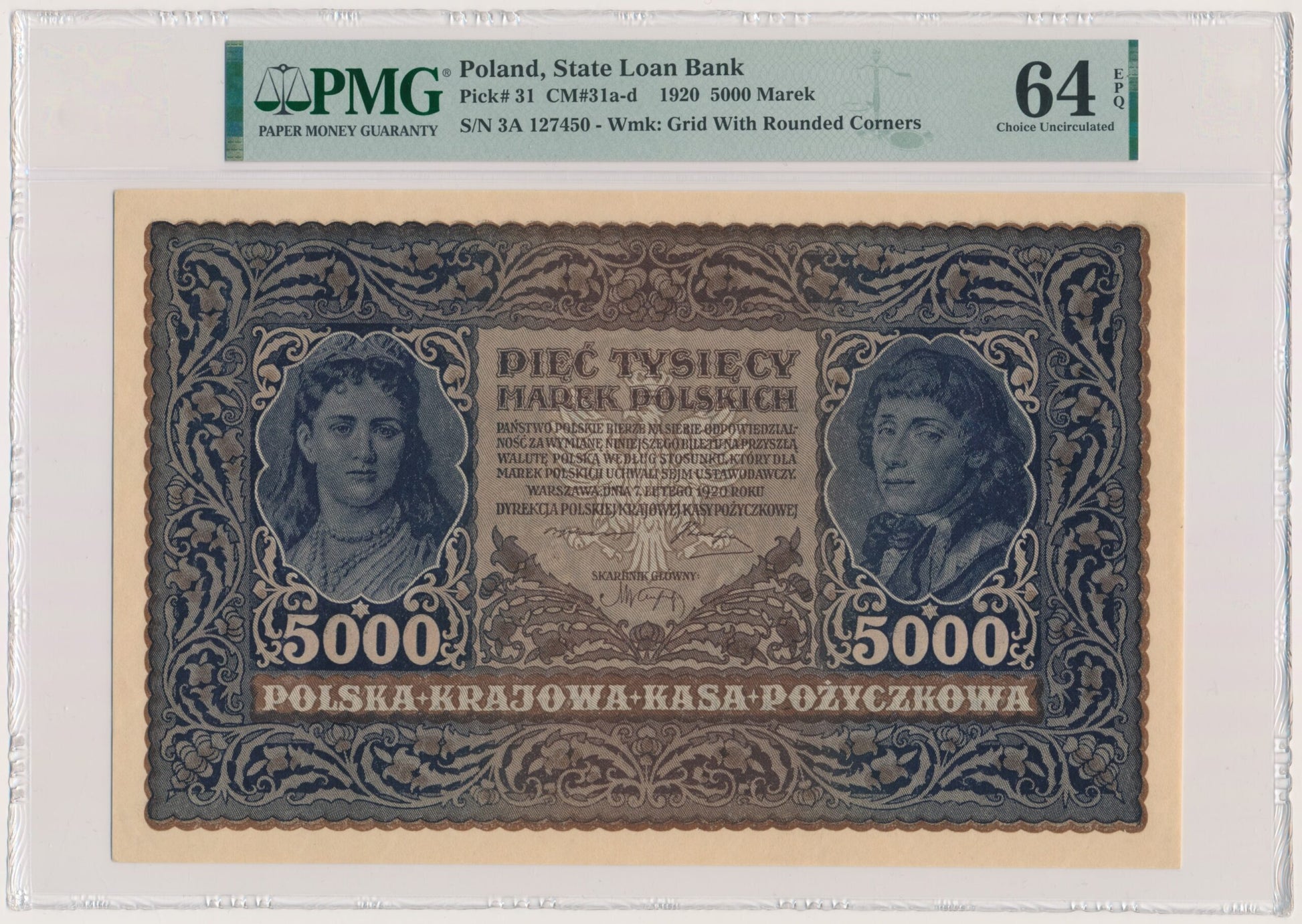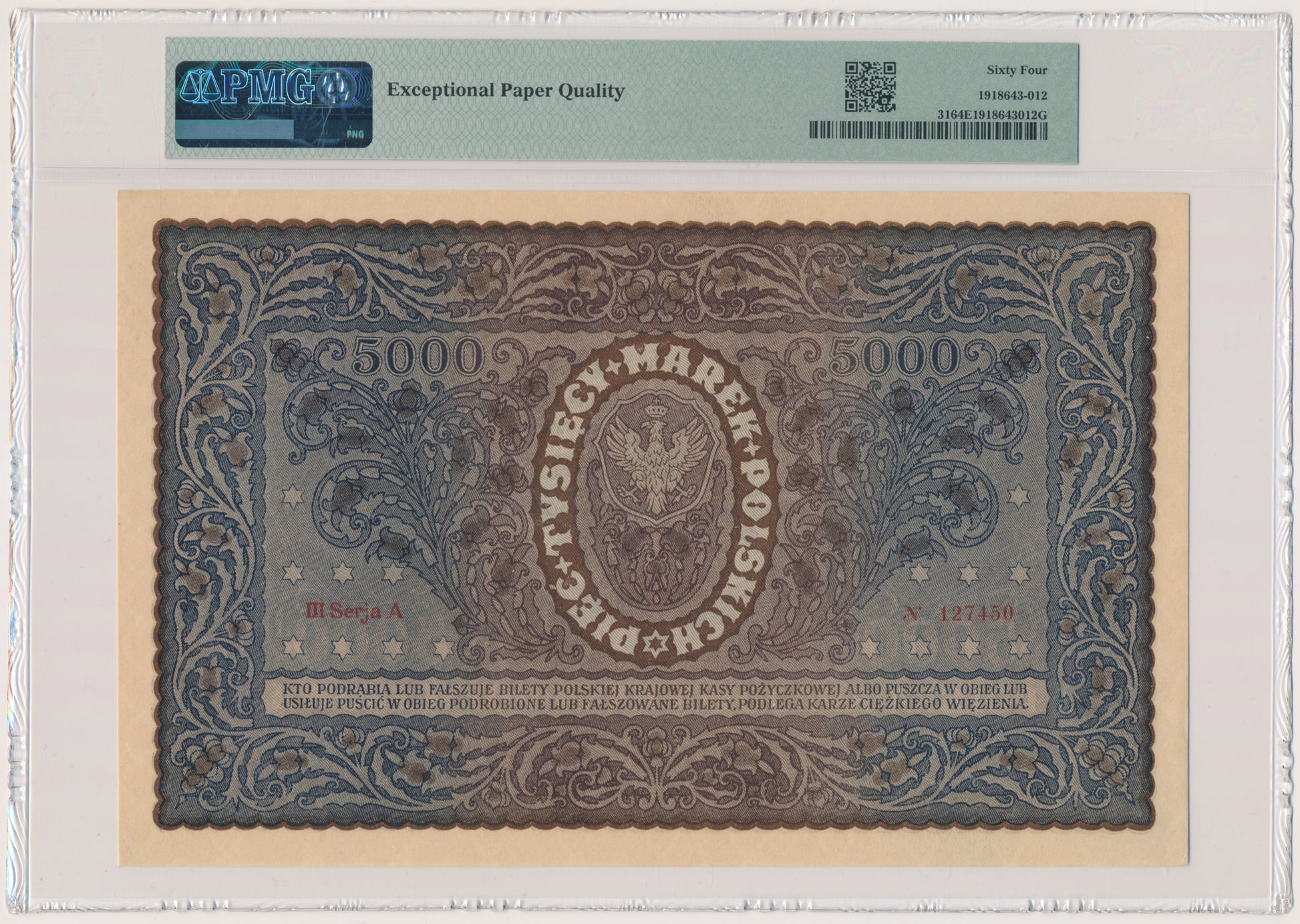 5.000 marek 1920 – III Serja A – PMG 64 EPQ