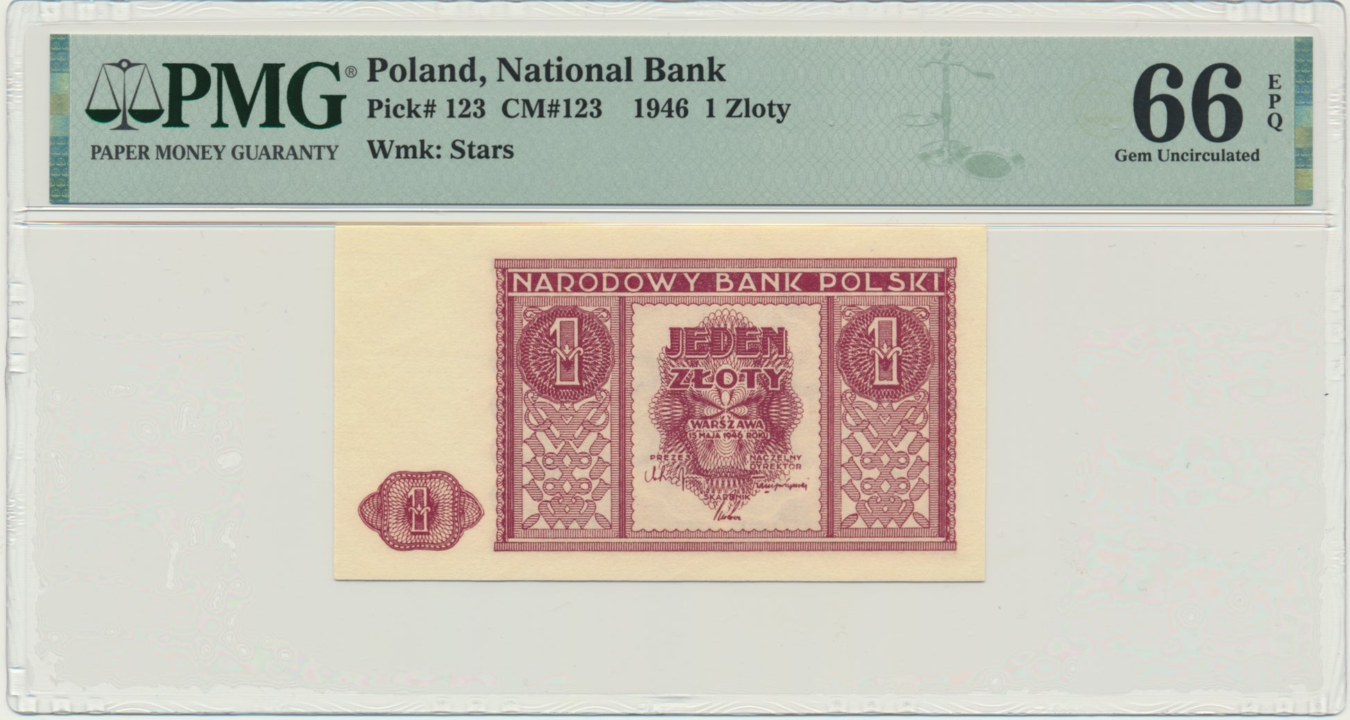 Banknot 1 złoty 1946 – PMG 66 EPQ
