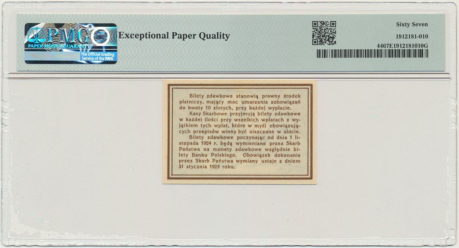 Banknot 10 groszy 1924 – PMG 67 EPQ MAX
